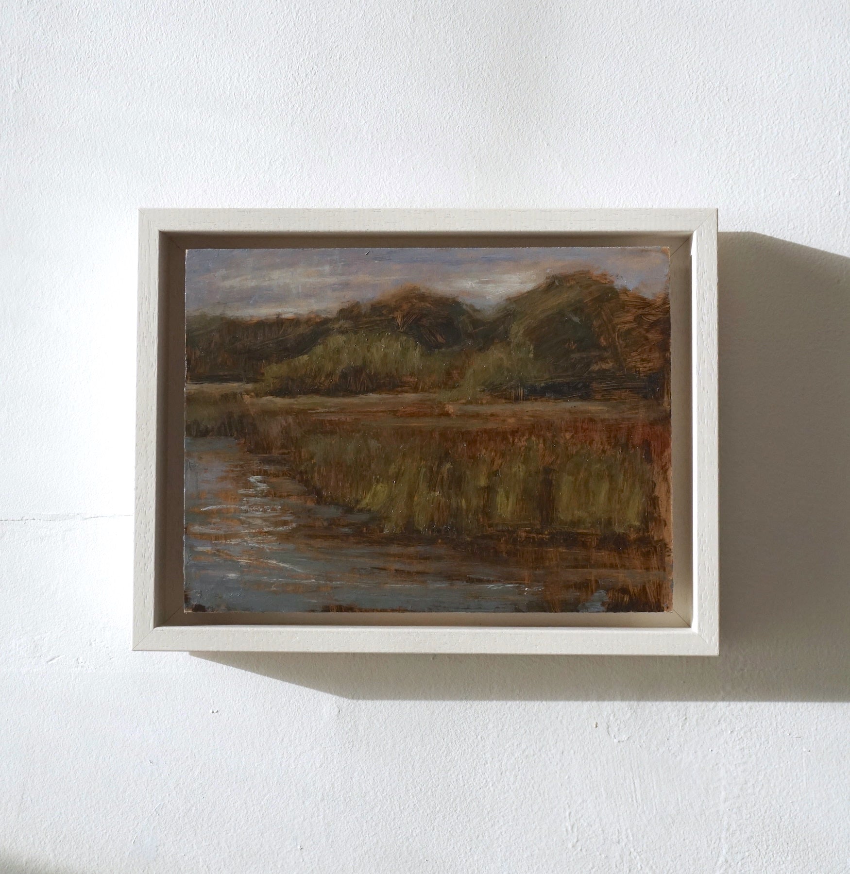 Painting framed in an off-white float frame (included).